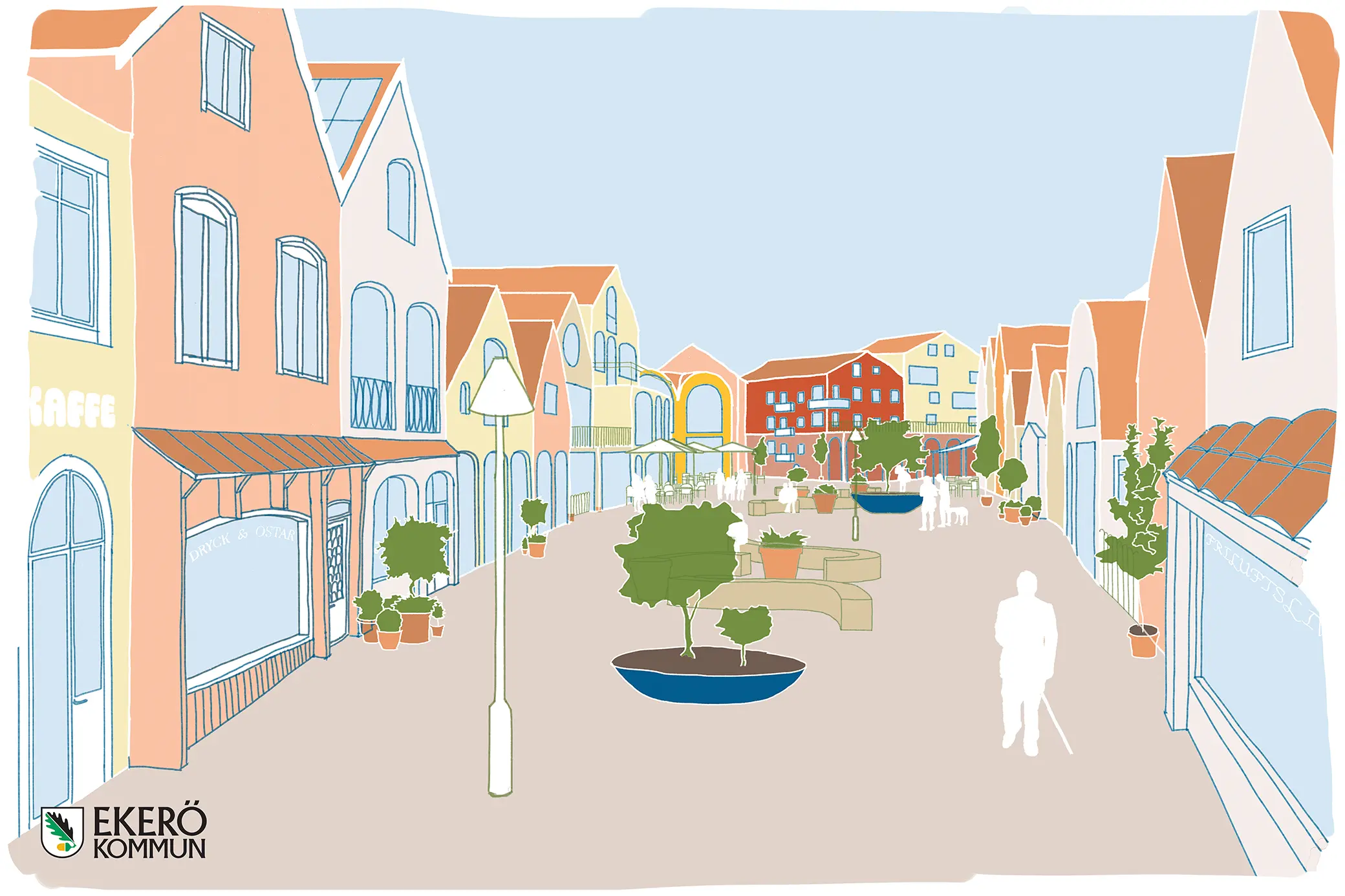 Småstadskänsla är nyckelordet när Ekerö Centrum ska utvecklas. Området sträcker sig mellan Tappströmsbron och bort förbi Nordiums lokaler på Tegelbruksvägen.
